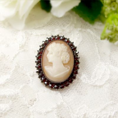 Bohemian garnet brooch with shell cameo ГРАНАТ 092EFL