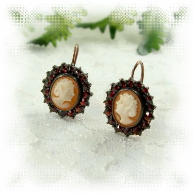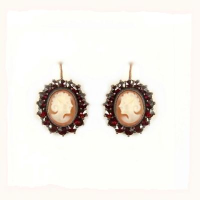 Bohemian garnet earrings/boutons with shell cameo ГРАНАТ 081WPK