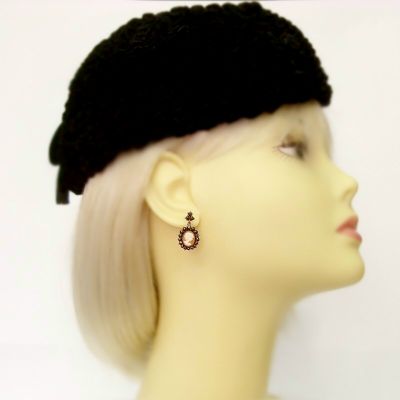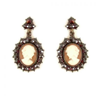 Bohemian garnet earrings w/14ctgold studs with shell cameo