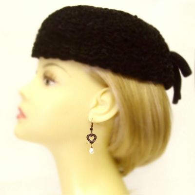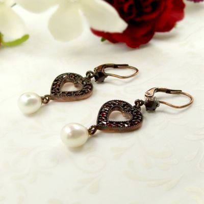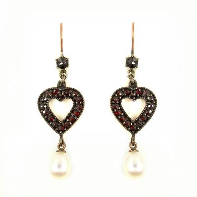 Bohemian garnet hearts & pearls earrings