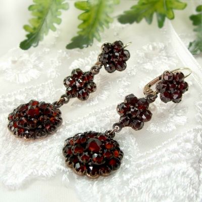 Vintage garnet cascade earrings w/14ct gold wires in Victorian style