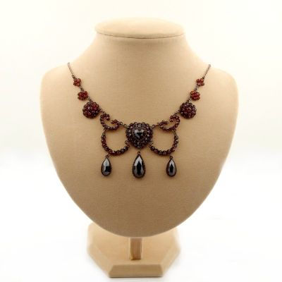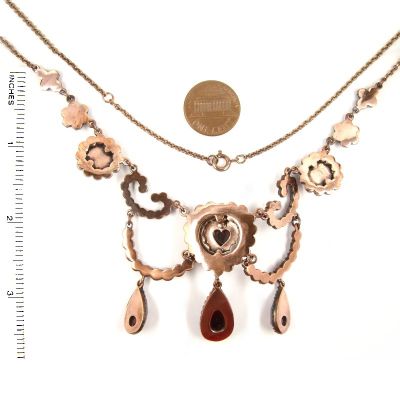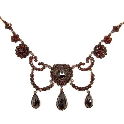 ##ÄHNLICH## Stunning Vintage garnet heart festoon necklace Victorian style