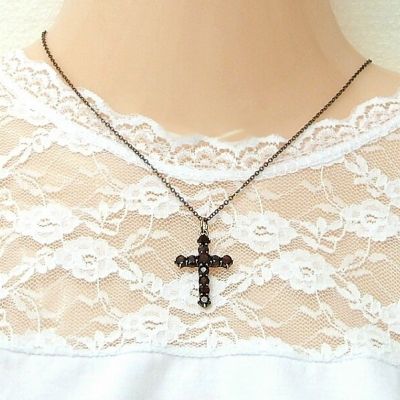 • Garnet cross pendant on Silver chain / 14ct rosegoldplated Garnet cross pendant on Silver chain / 14ct rosegoldplated Garnet cross pendant on Silver chain / 14ct rosegoldplated