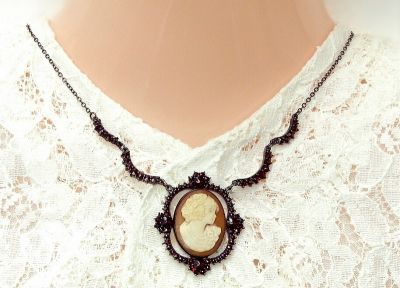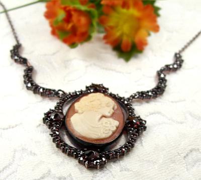 • Original Bohemian garnet necklace with shell cameo Original Bohemian garnet necklace with shell cameo Original Bohemian garnet necklace with shell cameo Original Bohemian garnet necklace with shell cameo Original Bohemian garnet necklace with shell cameo