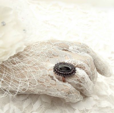 Awesome oval original Bohemian garnet ring