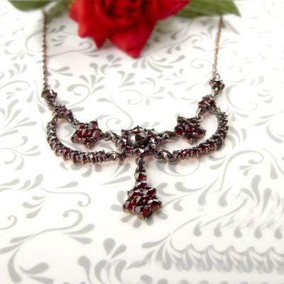 Original Bohemian garnet festoon necklace in Victorian style