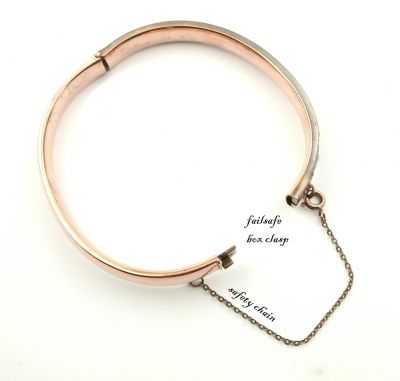 Original Bohemian three rows garnet bangle This bangle is set with 114 rosecut Bohemian garnets The garnets are set in three rows in Sterling Silver with a rosegoldplating like it was usually made in these days. The bangle is made of two halves that can be opened and closed with a failsafe box clasp and a safety chain. The bangle measures 2.6 inch x 2.2 inch. (This would be similar to a bracelet of 7.5 inches i.e. a normal wrist diameter for a lady ) The weight is 23.4 grams
