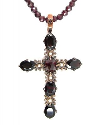 • Big Victorian garnet cross clipped on garnet ball chain
