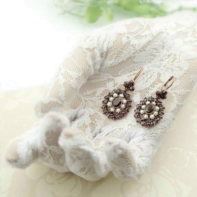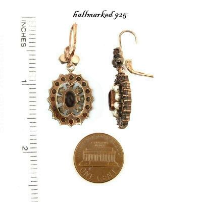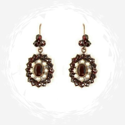 Vintage garnet oval earrings w/seed pearl in Victorian style